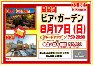 ・8/17(日)BBQビアガーデンやります!