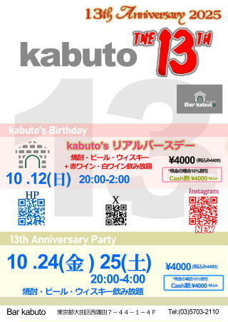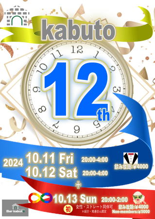 ●kabuto12周年パーティ開催します!