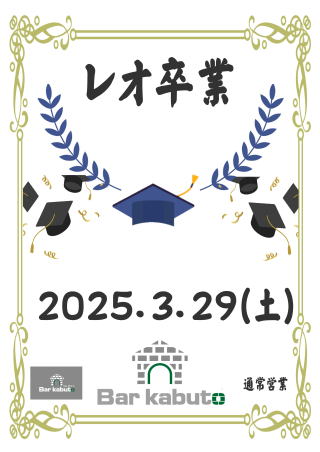 ●レオ卒業・3/29(Sat)kabutoラスト出勤