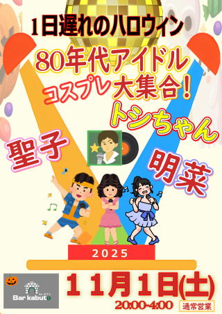 ●11/1(土) 1日おくれのハロウィン・80年代アイドルコスプレパーティ